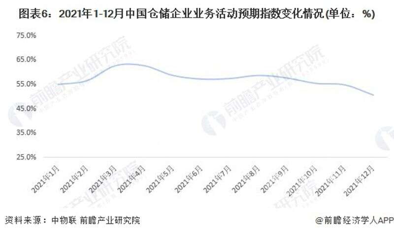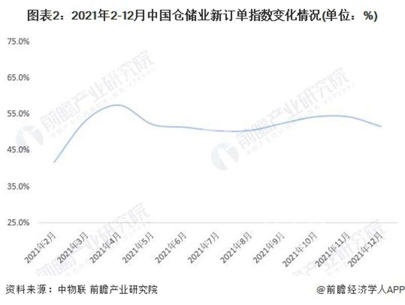 從中物聯(lián)發(fā)布的中國倉儲指數(shù)中的新訂單指數(shù)變化情況來看,2021年2-12月中國倉儲業(yè)新訂單指數(shù)均值為51.8%,同比下降0.4個百分點;顯示出倉儲行業(yè)受新冠疫情、全球經(jīng)濟下行等因素影響導致行業(yè)需求整體趨弱。