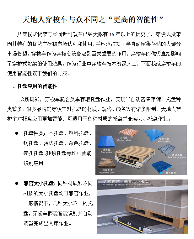 天地人穿梭車與眾不同系列之“更高的智能性”
