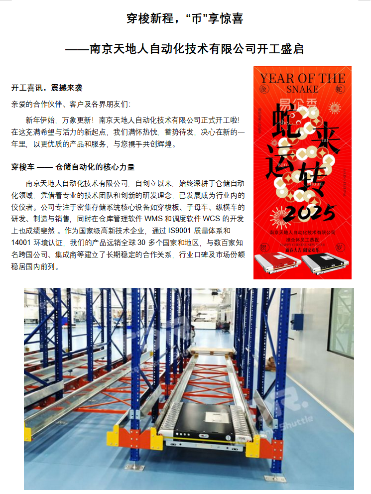 穿梭新程,“幣”享驚喜 ——南京天地人自動(dòng)化技術(shù)有限公司開工盛啟